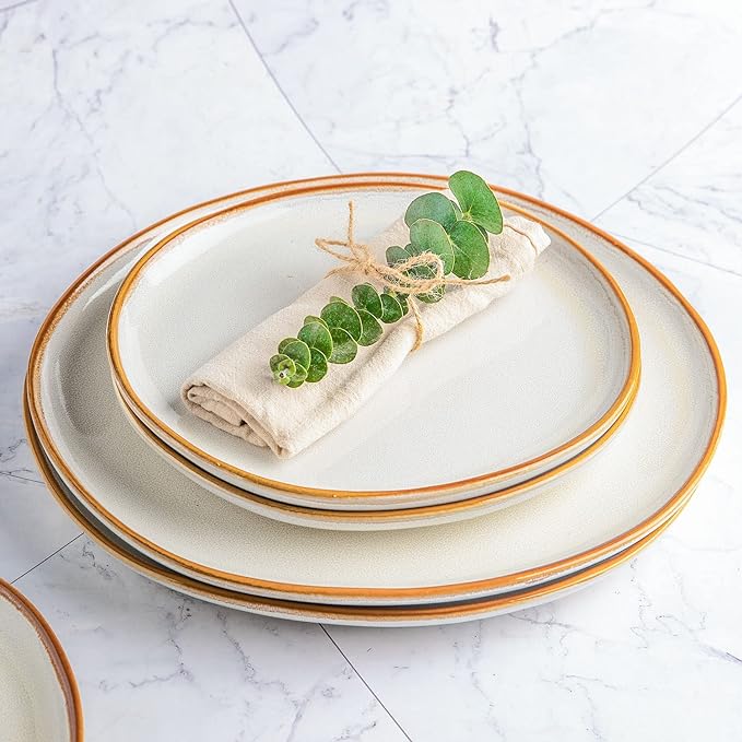 - DURABILITY EAT SAFTY:The plates are made of pro-grade material, and the glaze is all-natural. After 2340℉ high temperature firing for 13 hours, the plates are lead-free, cadmium free, meaning you will never have to worry about any health problem.The glaze is also extra strong to prevent scratches from your knives and forks.