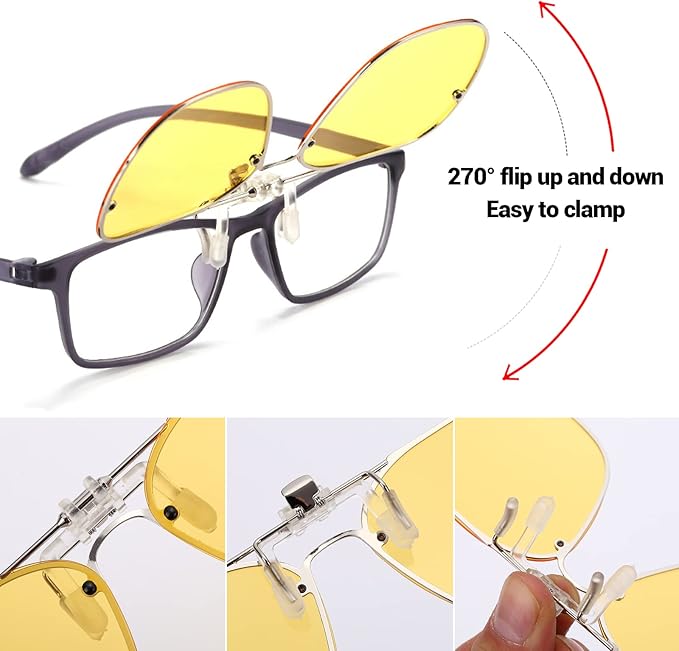 - ❤STURDY AND VERSATILE- the inner edge of the lenses is enclosed by a strong and sturdy metal rim for protection so they won’t be easily damaged. The clip-on is suitable for various outdoor activities such as driving, fishing, traveling, etc.
