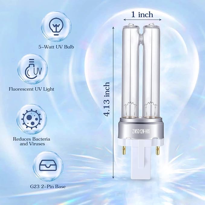 - Bulb Type: UV-C ultraviolet; Base type: G23 2 pin