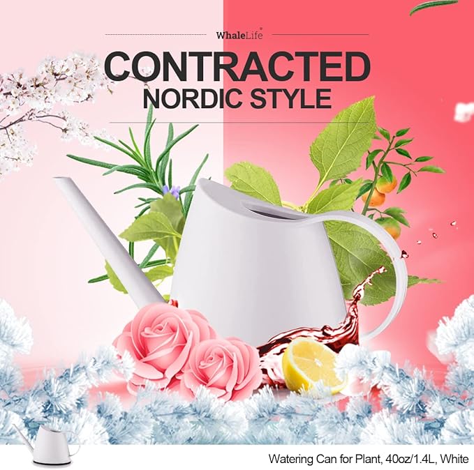 WhaleLife Indoor Watering Can for House Bonsai Plants (1.4L, White)