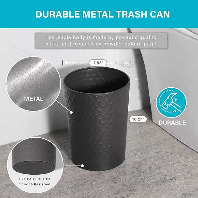 - Bathroom Accessories Set with Trash Can: With a compact garbage can, built from sturdy metal, features matte finish and geometric exterior, matches nicely with your decor; fit well for home, bathroom, office or Dorm.