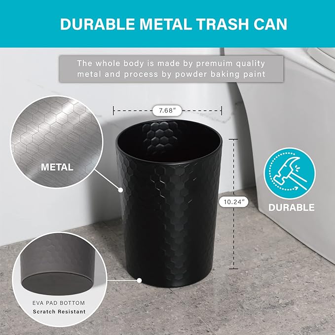 - Bathroom Accessories Set with Trash Can: With a compact garbage can, built from sturdy metal, features matte finish and geometric exterior, matches nicely with your decor; fit well for home, bathroom, office or Dorm.