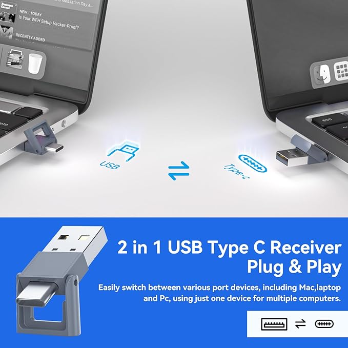 - Special Feature : 2 in 1 USB C Receiver, Metallic Body, Multi-OS Compatible, Plug-and-Play, Rechargeable