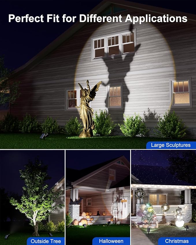 - Wider and Farther Illumination: Our solar uplighting illuminates up to 35 feet, brightening flags at night. It projects light circles from 2 to 20 feet in diameter, fully lighting large sculptures and casting sharp shadows for a striking visual effect.