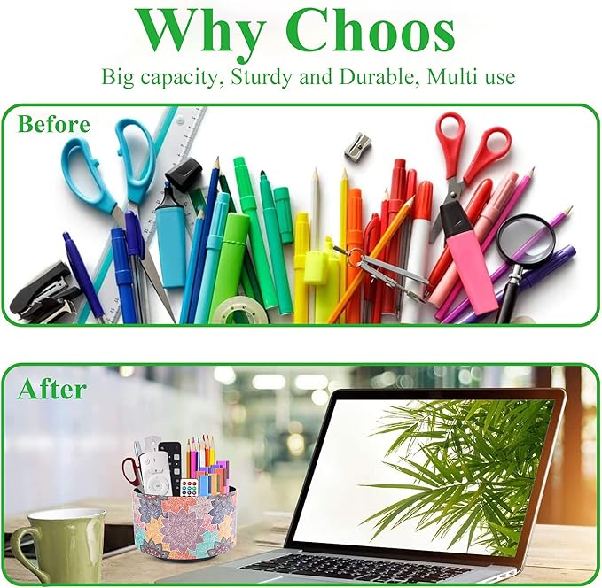 - ✎360° Revolving Design: You can freely rotate the pen holder steadily left and right,unique spinning base design allows easy access to items from any directions.The non-slip pads on the bottom keep it stay in place when rotating.