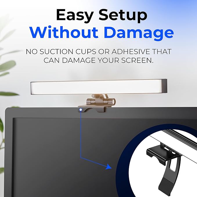 - Easy set up and removal: The monitor or laptop light sits on top of your screen with a webcam style stand. It is meant for stationary use and does not use unreliable suction cups or damaging adhesive just for a computer video light. Position your camera first then add the monitor lights.