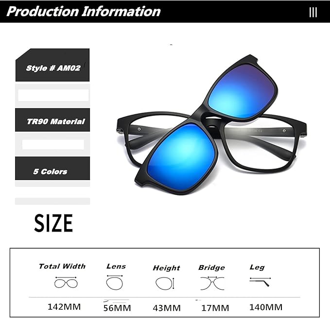 Clip on Flip up Polarized Lens For Prescription Glasses UV Protection Sunglasses (Clear lenses not Polarized)