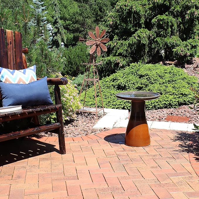 - STYLISH OUTDOOR ACCENT: This ceramic glazed bird bath for outdoors can be placed on the patio, in the yard, or in the garden for a beautiful outdoor accent. It features a wide, shallow bowl which makes it easy for a variety of birds to preen and bathe.