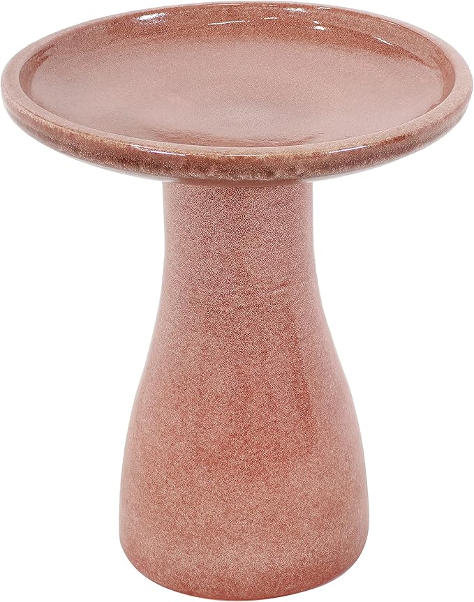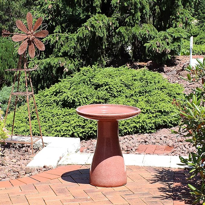 - STYLISH OUTDOOR ACCENT: This ceramic glazed bird bath for outdoors can be placed on the patio, in the yard, or in the garden for a beautiful outdoor accent. It features a wide, shallow bowl which makes it easy for a variety of birds to preen and bathe.