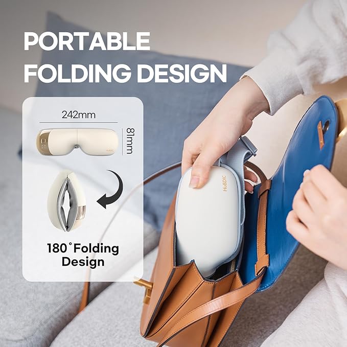 HuBDIC HubiCare Eye Massager with Heat, Vibration, and Music Helps Relieve Strain, Dark Circles, Dryness, and for Migraine Relief Relaxation and Better Sleep Gifts for Women/Men (Beige)