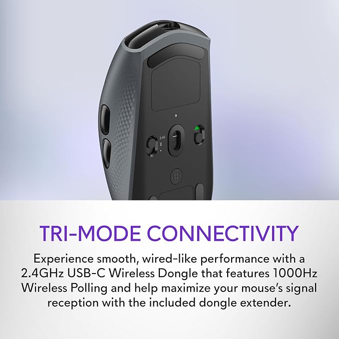 - Experience smooth, wired-like performance with a 2.4GHz USB-C Wireless Dongle that features 1000Hz Wireless Polling and help maximize your mouse’s signal reception with the included dongle extender. Alternatively, connect your AW720M with a USB-C cord or via Bluetooth 5*—the latter option being perfect for linking to mobile devices. *Bluetooth 4.0 or above needed.