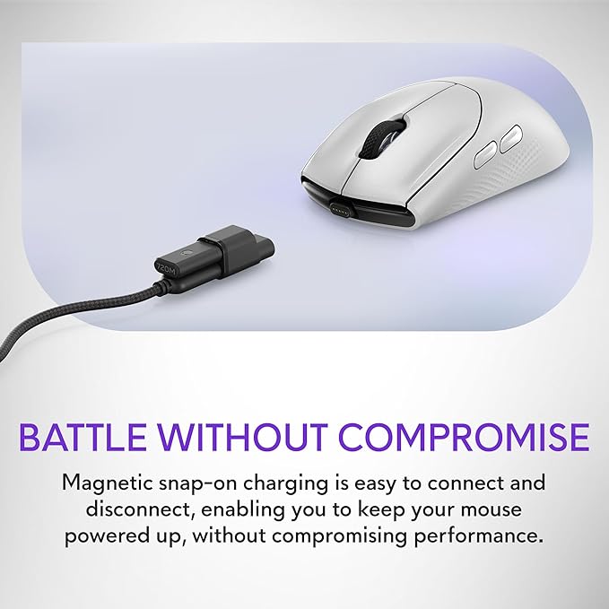 - Battle Without Compromise: Magnetic snap-on charging is easy to connect and disconnect, enabling you to keep your mouse powered up, without compromising performance.