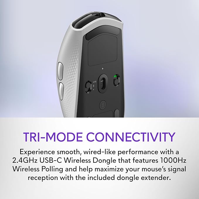 - Experience smooth, wired-like performance with a 2.4GHz USB-C Wireless Dongle that features 1000Hz Wireless Polling and help maximize your mouse’s signal reception with the included dongle extender. Alternatively, connect your AW720M with a USB-C cord or via Bluetooth 5*—the latter option being perfect for linking to mobile devices. *Bluetooth 4.0 or above needed.