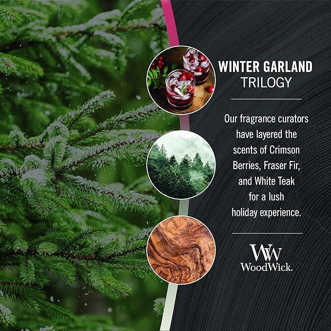 WoodWick Medium Hourglass Candle Winter Garland - Premium Soy Blend Wax Pluswick Innovation Wood Wick Made in USA Holiday Gifts for All