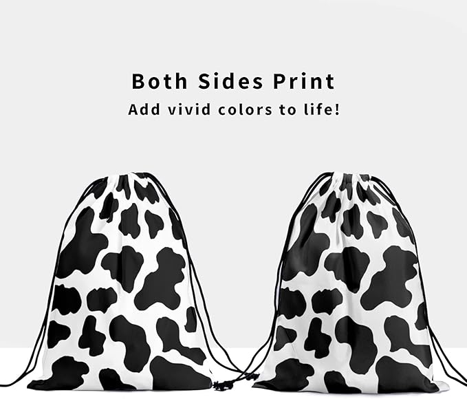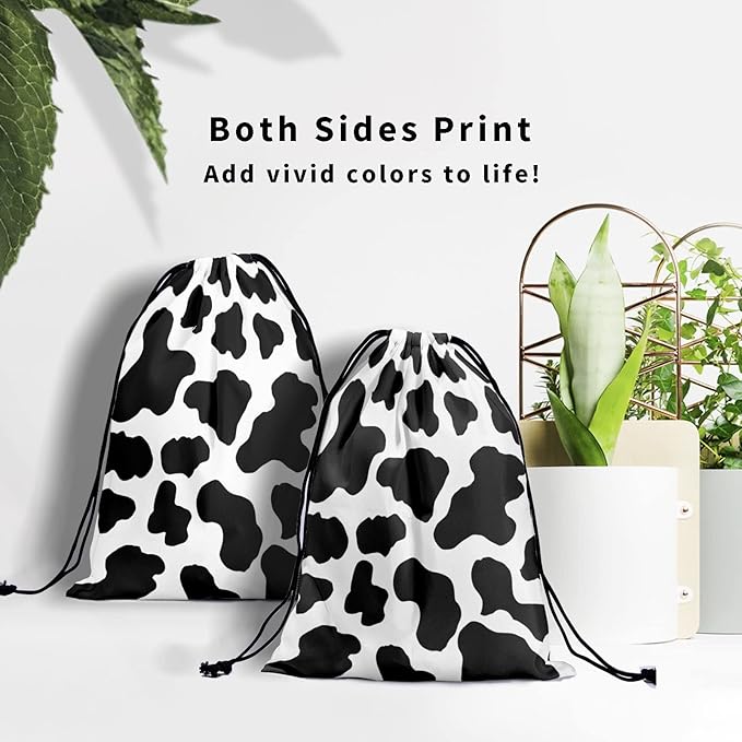 - 【HIGH QUALITY MATERIAL】 Made of high quality polyester. Soft and breathable fabric and dust proof to protect your items from damage. Our black white cow drawstring bag is easy to wash, recyclable, which is a good choice for daily life and fitness to place your belongings.