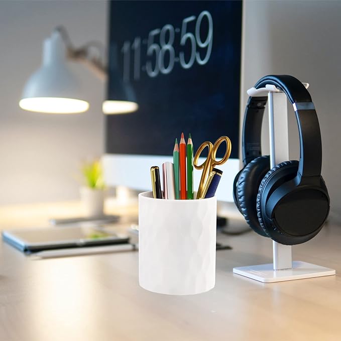 - 【Skid resistance&Large capacity】3.94 ×3.34 inches.The round base of pencil cup for office white is stable and does not fall over easily.The edge of pencil organizer is smooth,average thickness of 3mm.The round and wide desk pen holder can help you to find pens or pencils, keeping your desk tidy and organized.