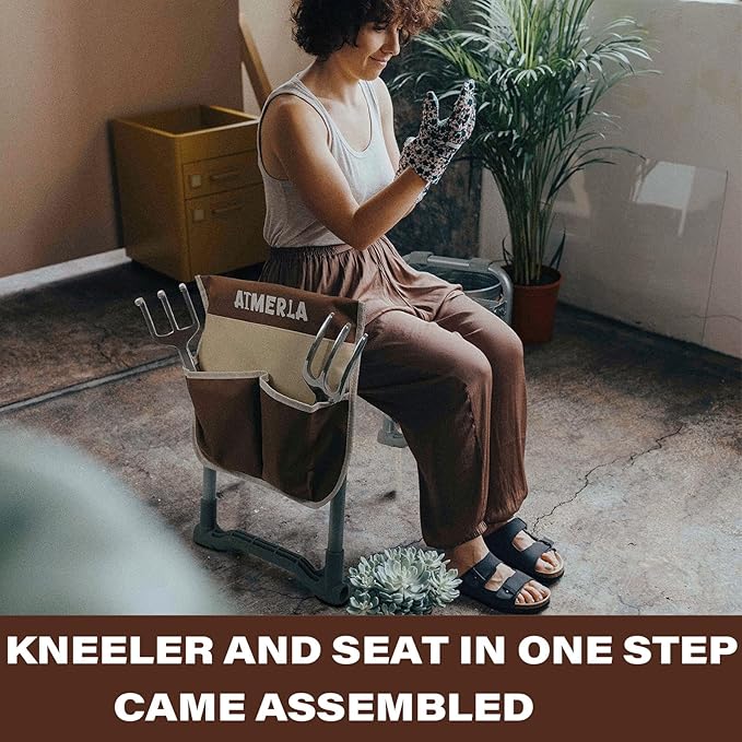 - KNEELER AND SEAT IN ONE STEP & CAME ASSEMBLED! Get a whopping 14X10 IN wide of seat vs. the standard 10X5 IN with our unique Upgraded widened Thick Kneeling Pad! This kneeler is super easy to store thanks to a quick folding mechanism.No messing around just fold and go.This kneeler is complete with a snap-lock that ensures it stays shut when it's flipped and used as a garden stool. So whether you are kneeling on the ground to prune weeding and planting.Aimerla Kneeler will hit your sweet spot!