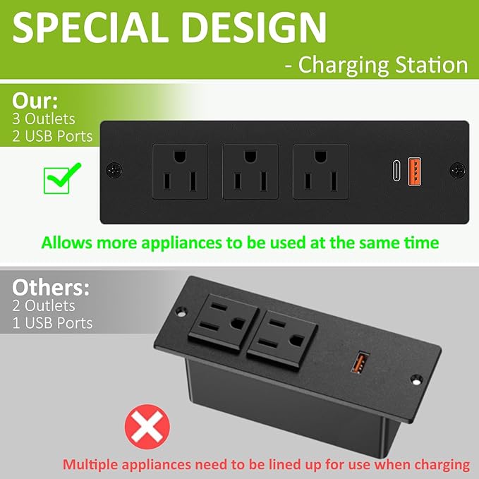 - 【Height Adjustable Standing Desk with Charging Station】3 Standard Plug Outlets & 2 USB Ports can charge your electronic devices at the same time, curing battery anxiety. Caster wheels and a 6.5 ft long power cord supply can let you move this lifting desk easily. Farexon height adjustable standing desk can be adjusted between 27''-45'' according to your needs. 4 memory buttons can easily set the usual height, the stored memory position is still valid after power failure.