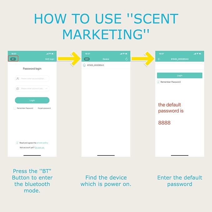 - 【The Operation Tips】 The APP default password is 8888. If you do not want to download the app, the machine can also work without the app. But it will work as the default process: work for 5 seconds, then pause for 240 seconds, then work for 5 seconds, then pause, and so on. It's different between the traditional diffuser, it's not broken or not worked.
