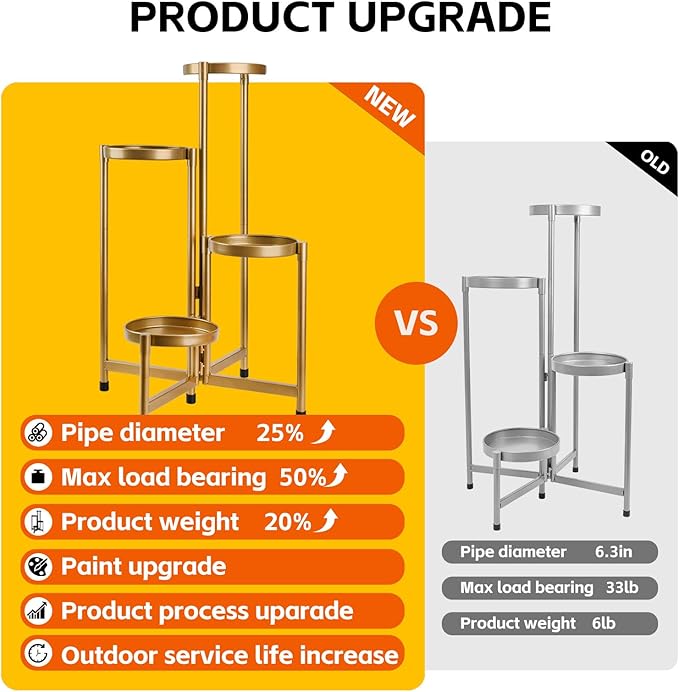 - 🍀【Durable Plant Stand】 With advanced electroplating technology, our flower stand is made of high-quality metal. The surface of the product is smooth and it is not easy to scratch your hand. The maximum capacity of the flower plant is approximately 33 lbs.