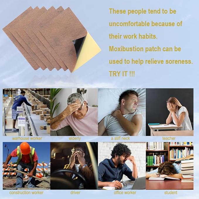 (100pcs) Moxibustion Patches 艾灸贴 Pure Nature Moxa Sticker Foot Pads Chinese Traditional Paste for Neck, Shoulder, Back, Waist, Hand, Feet, Joint, 7 * 10cm, Pack of 10