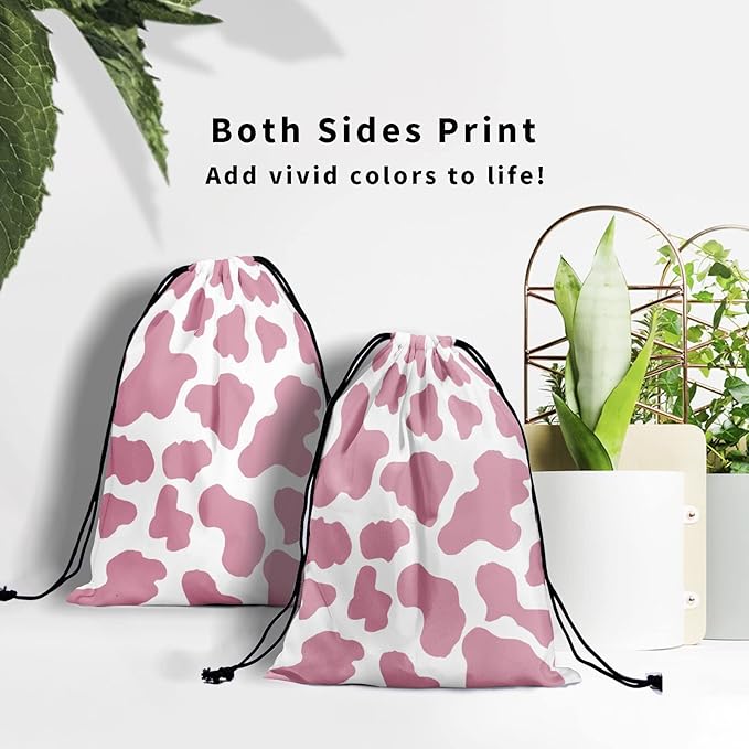 - 【HIGH QUALITY MATERIAL】 Made of high quality polyester. Soft and breathable fabric and dust proof to protect your items from damage. The cute cow print drawstring bag is easy to wash, recyclable, which is a good choice for daily life and fitness to place your belongings.