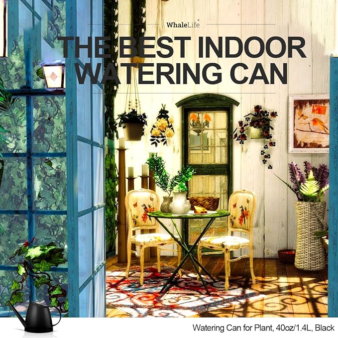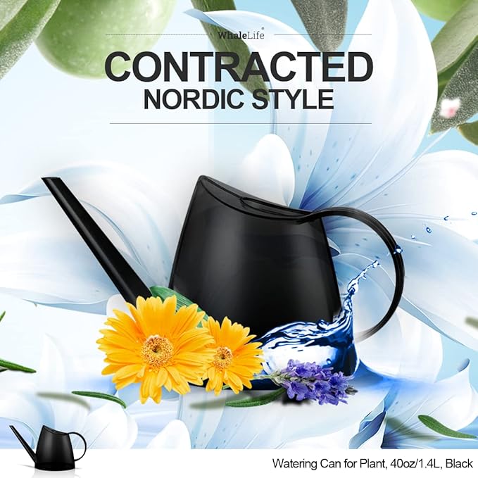 WhaleLife Indoor Watering Can for House Bonsai Plants (1.4L, Black)