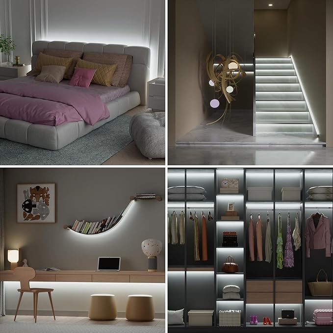 - 【Durable and Widely Used】Different from single-sided PCB, the true double-layer PCB is more resistant to compression and are not easily damaged or deformed. With strong double-sided adhesive tape, PAUTIX COB LED strip lights can be attached and installed reliably. 16.4ft/5m in length, very suitable for decoration in kitchen, cabinet, bedroom, stairs, mirror, hallway, DIY backlight, table lamp, toy lamp and other places needed.