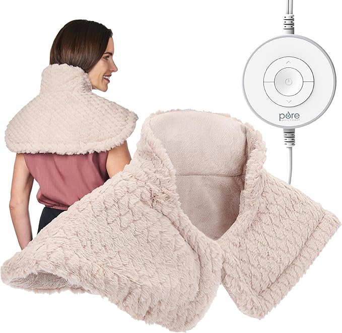 Pure Enrichment PureRadiance Neck & Shoulder Luxury Heating Pad for Pain Relief, Patented Design, Soft Faux Fur & Micromink, 6 Heat Settings, Machine Washable, Universal Fit, 16” x 22” (Rose Quartz)