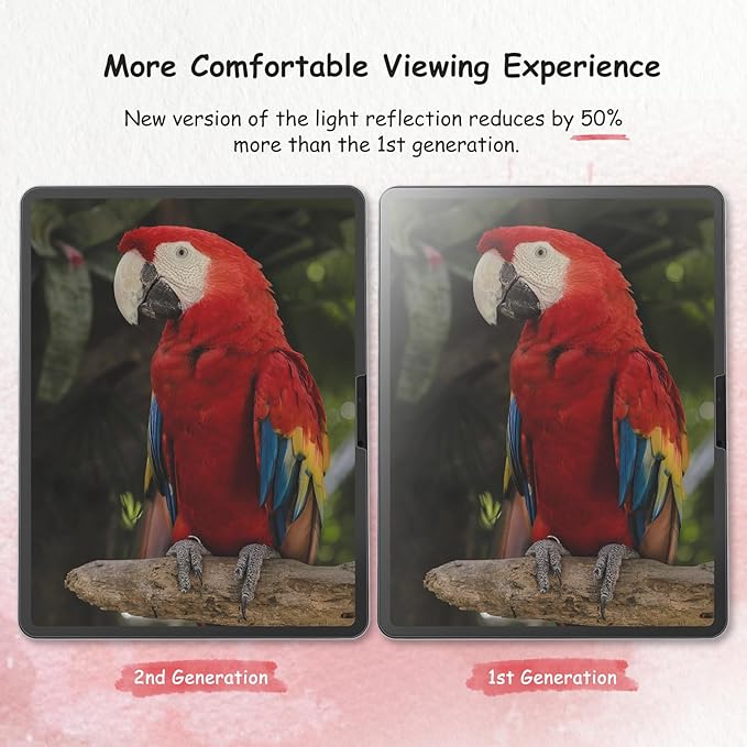 - Anti-Glare Enhanced: The special texture on the screen protector surface can reduce the reflection of light, so that you can easily read the screen and create your work even under strong light, and take better care of your eyes. With anti-fingerprint and waterproof properties, the clean and anti-glare screen provides you with a comfortable visual experience
