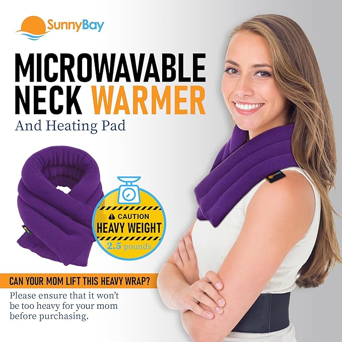 SunnyBay Microwave Heating Pad, Microwavable Heated Neck and Shoulder Wrap for Moist Hot or Cold Therapy, Lightly Weighted with Moldable Flaxseed, 26x6 Inches, Made in USA, Purple