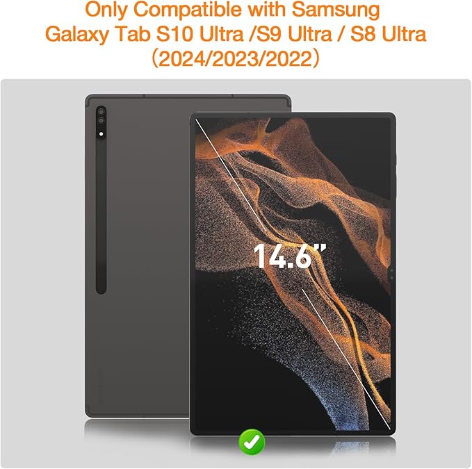 - Compatibility: Specially compatible with for Samsung Galaxy Tab S10 Ultra /S9 Ultra / S8 Ultra 14.6 Inch (SM-X920/ SM-X926B/ SM-X926N/ SM-X920N/ SM-X900/ SM-X906/ SM-X916B). Only fit for this model. check your model before purchasing. Compatible with S Pen, Fingerprints Unlock and Face recognition