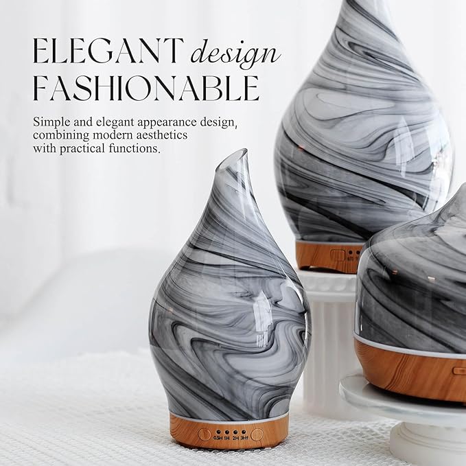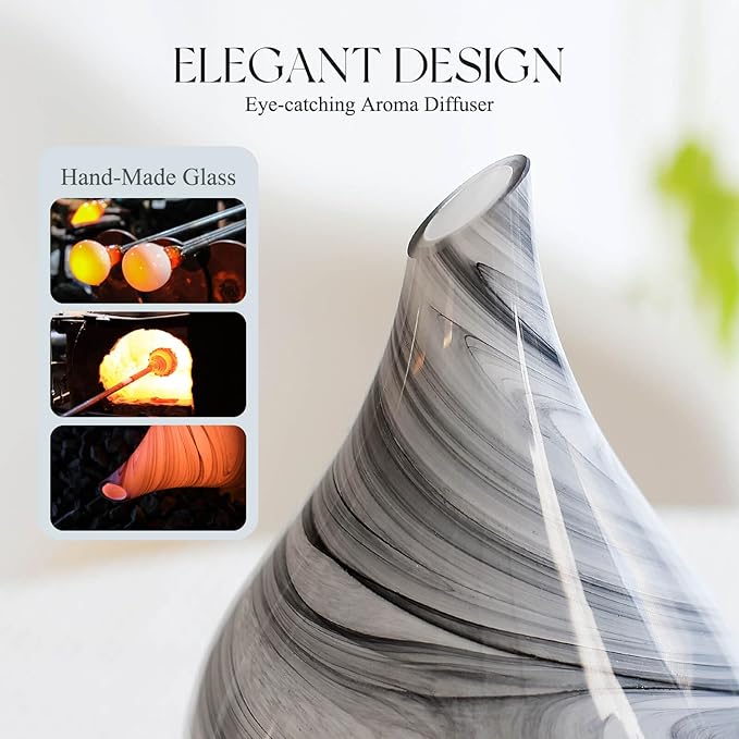 - UNIQUE ART DECORATIVE DESIGN - Our 150ml glass essential oil diffuser has an elegant starry pattern glass cover and wood grain decorative base. It is very suitable for your bedroom, living room, children's room, study room, office, and yoga room.