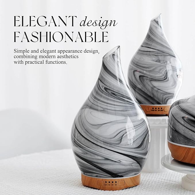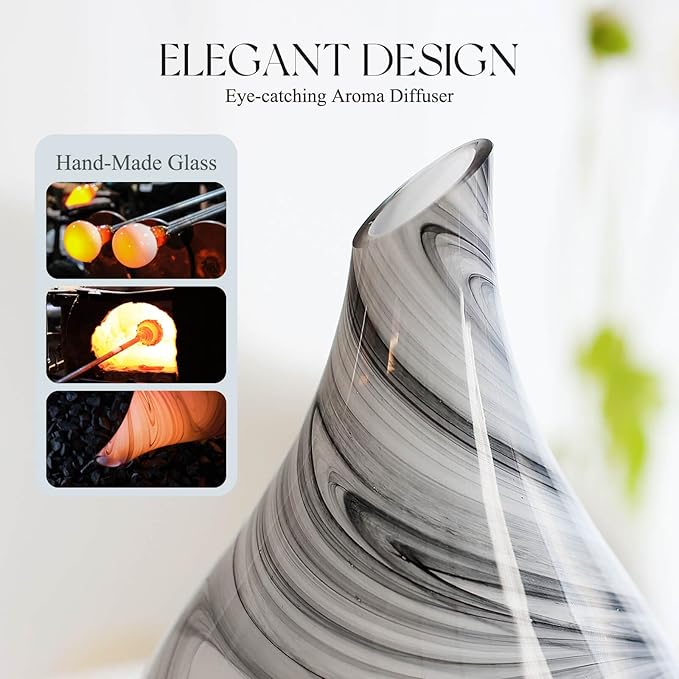 - UNIQUE ART DECORATIVE DESIGN - Our 280ml glass essential oil diffuser has an elegant starry pattern glass cover and wood grain decorative base. It is very suitable for your bedroom, living room, children's room, study room, office, and yoga room.