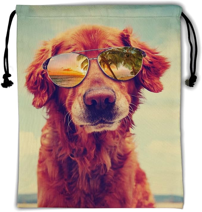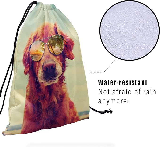 - 【MULTI FUNCTION】 The beach golden retriever dog drawstring bag is the perfect complement to your home, travel or fitness equipment series and the best choice for any indoor or outdoor activity. It can be used as a storage bag for handbags, small gymnastics bags or daily clothes or shoes. Perfect as a gift for birthday parties, handicraft activities, Halloween, Christmas, camping and other outdoor activities.