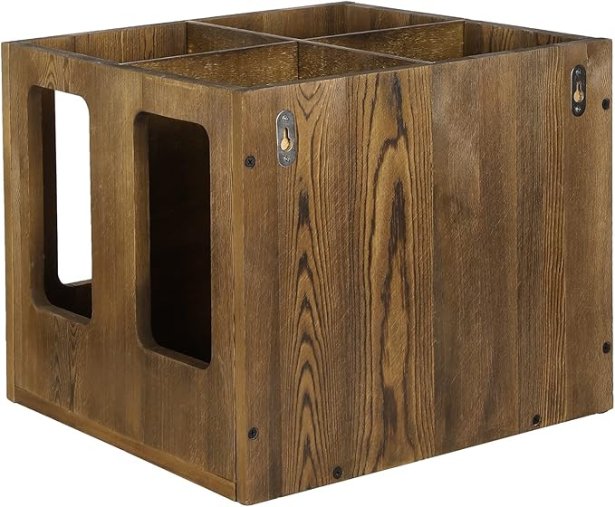 - Free standing organizing bin can be placed on the floor and flat surfaces, or can be wall mounted with the attached keyhole brackets and compatible wall fasteners **Includes 4 bottom foot pads; includes standard mounting hardware**