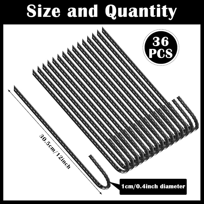 - Secure Your Outdoor Space: this 36 pack of heavy duty rebar stakes measures about 12 inches long and 0.39 inches in diameter, offering strong anchoring power for multiple uses; Ideal for securing chain link fences, swing sets, slides, trampolines, yard decorations, tents, garden netting, and other outdoor projects, keeping structures safe, stable, and firmly in place