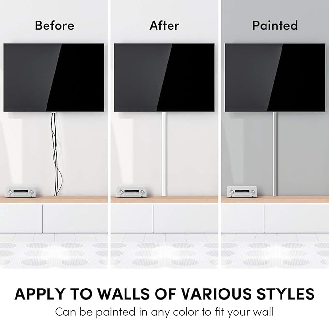 - Problem Solved - The days of messy cables all over your house are coming to an end now as EVEO provides you with the cord hider that will make your house look neat! Our cable management kit comes with all necessary components for smooth installation. This cord hider wall mounted tv fits up to 153" of cable (up to 0.95" Wide / 0.5" high - for example: 1 HDMI cables + 2 regular USB/AUX cables). Super steady locked structure and fine finishing our cord hider wall perfectly fits your home decor.