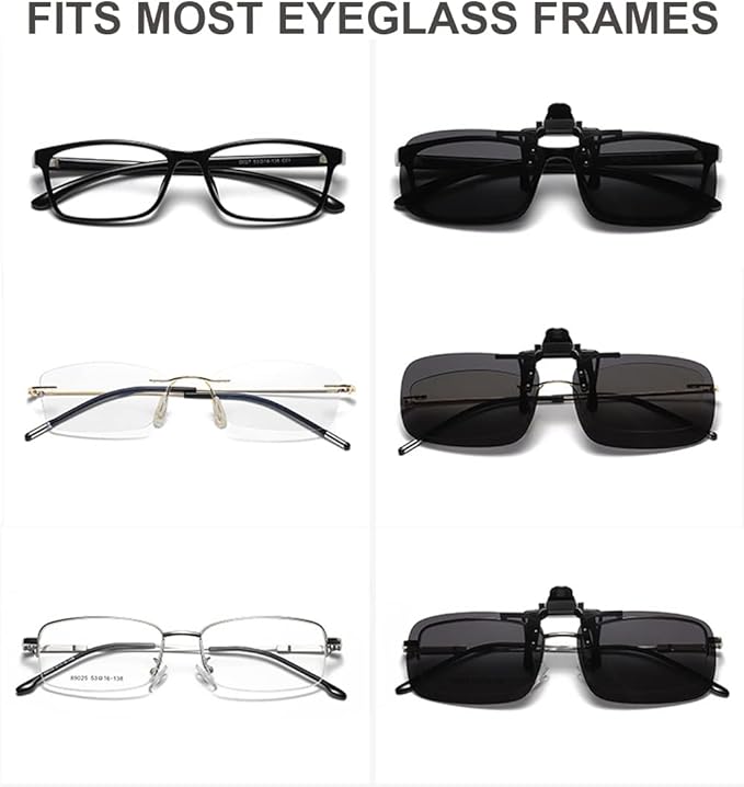 - 【SIMPLE TO USE】: Just clip it to your prescription eyeglass frame to get polarized sunglasses functionality. No need to buy expensive prescription sunglasses. The flip-up design allows you to switch at any time as needed.
