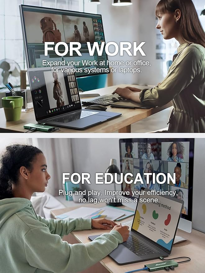 Hiearcool USB C Hub, 8 in 1 USB C Hub Multi-Port Adapter with Gigabit Ethernet, USB C to 4K@60Hz HDMI Dock Dongle for MacBook Pro Air M1 M2 and Type C Laptops-Green
