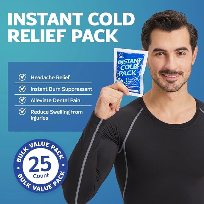 25 Pack Instant Ice Cold Pack (6” x 4.5”) - Disposable Instant Ice Packs for Injuries | Cold Compress Ice Pack for Pain Relief