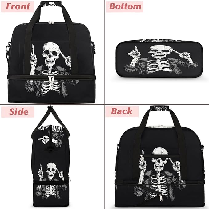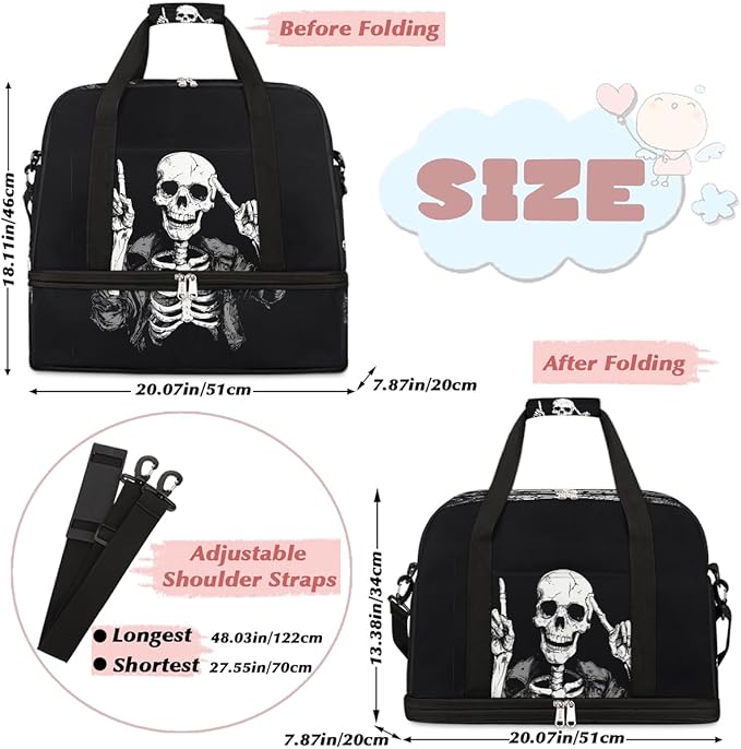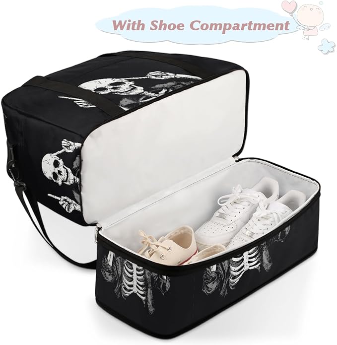 Sports Gym Bag, Human Skeleton Skull Halloween Travel Duffel Bag with Shoes Compartment Waterproof Overnight Bag Workout Weekender Bag Boys Girls Yoga Dance Bag Gym Tote Bag for Women Men