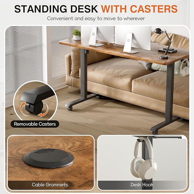 Furmax Electric Standing Desk, 55 x 24 Inches Height Adjustable Desk with Removable Casters, Home Office Computer Desk (Brown)