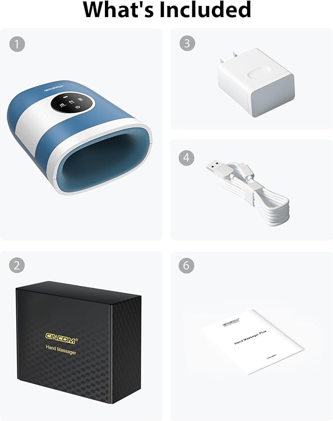 - CINCOM Upgraded Hand Massager - The hand massager with heat and compression offers a kneading massage with 7 airbags and a massage head. The compression, release and heating of the airbags help to finger numbness & relax joints. Suitable for both left and right hands.
