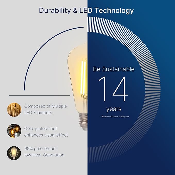 - High Brightness and Energy Efficiency: Replace 100 Watts incandescent bulb by 8W LED light bulb, up to 90% less energy than traditional incandescent lamp, lasting about 15000 hours, saving energy and your cost. Low heat dispersion and high lighting efficacy