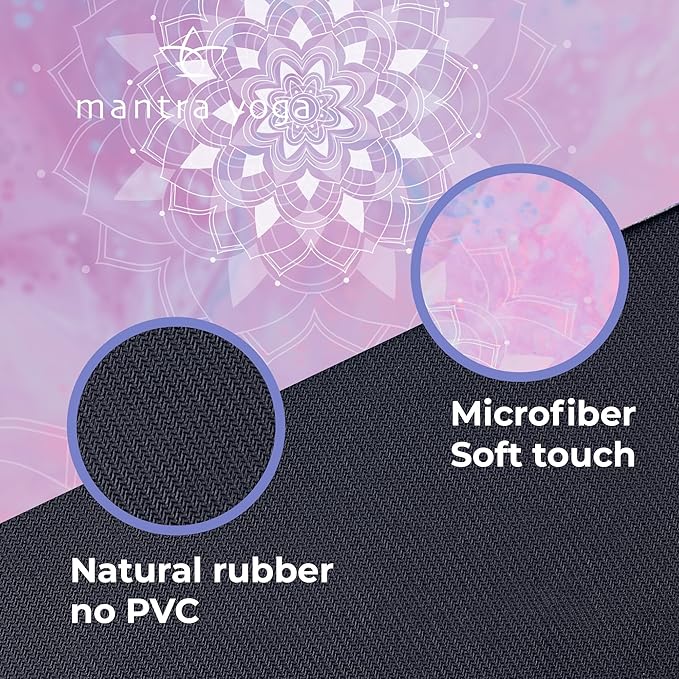- 🤸♂ Sticky Non-Slip Texture with Absorbent Microfiber Topper – Looking for a yoga mat that provides a reliable grip and stability during your practice? Look no further than Mantra Yoga's sticky non-slip mat with an absorbent microfiber topper! Made with high-grip tree rubber that's naturally sticky, this fitness mat ensures you never lose your grip on the floor during yoga. The special microfiber top layer provides extremely reliable slip resistance, giving you stability in all asanas. Plus, the mat becomes even grippier as you get sweatier! Say goodbye to slipping and sliding during your yoga practice and order your sticky non-slip yoga mat from Mantra Yoga today!
