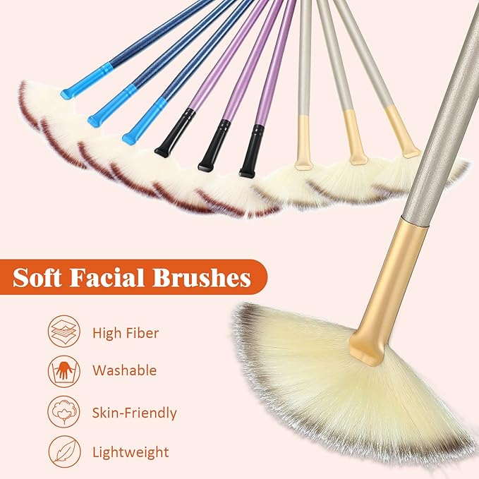 - Practical fan shape brush for makeup: wooden handle and soft fiber face fan shape brushes are portable and lightweight, easy to carry or put in your pocket or cosmetic bag, each brush match with a brush cover to prevent dirt, oil which may be on your hands from touching the brush