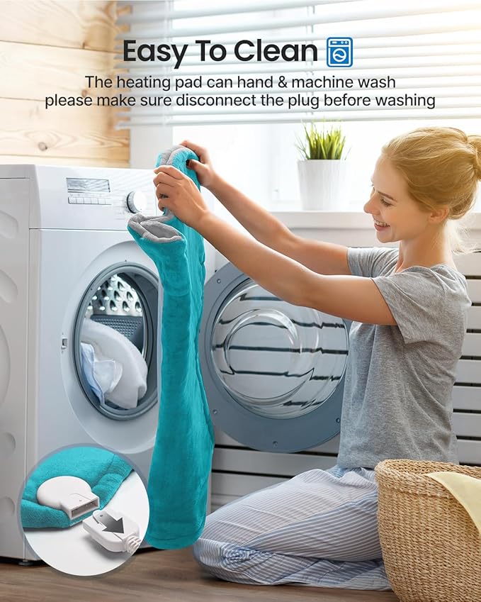 - Super Soft & Easy to Clean: Made from super soft flannel provides maximum comfort. The neck pain relief heat pad is machine-washable after removing the controller, cleaning will be a breeze! (NOTE: Since the heating pad has built-in heating wires, please do not machine wash it frequently. Do not tumble dry or iron at high temperature.)