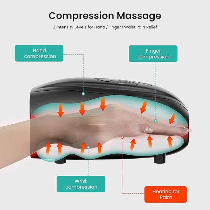 - Vibration & Soothing Heat - Snailax hand massager machine provides optional vibration to soothe every inch of your sore muscles and soft tissues, effectively alleviating finger numbness, arthritis, joint pain, or carpal tunnel pain. The gentle heat can eliminate your fatigue and coldness, promotes blood circulation.
