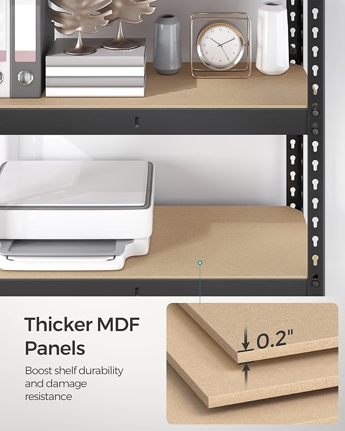 - [Stable and High Load Capacity] The sturdy steel frame and thick MDF panels of this set of two 5-tier shelving units offer a maximum weight capacity of 462 lb per shelf, while reinforced crossbeams provide extra stability